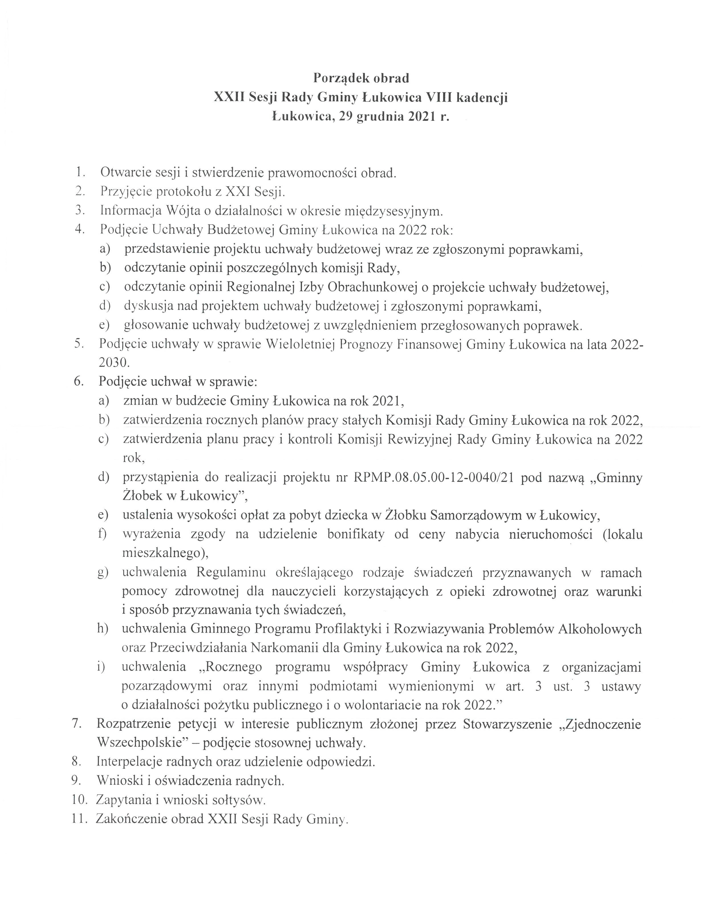 XXII Sesja Rady Gminy Łukowica odbędzie się 29 grudnia 2021 r. (środa) o godz. 10.00 w budynku tzw. Obory Podworskiej w Łukowicy.
